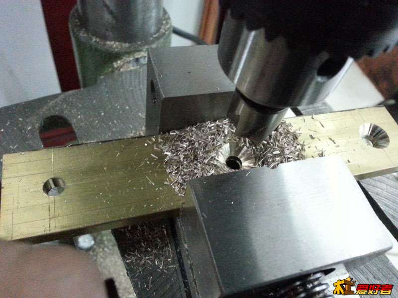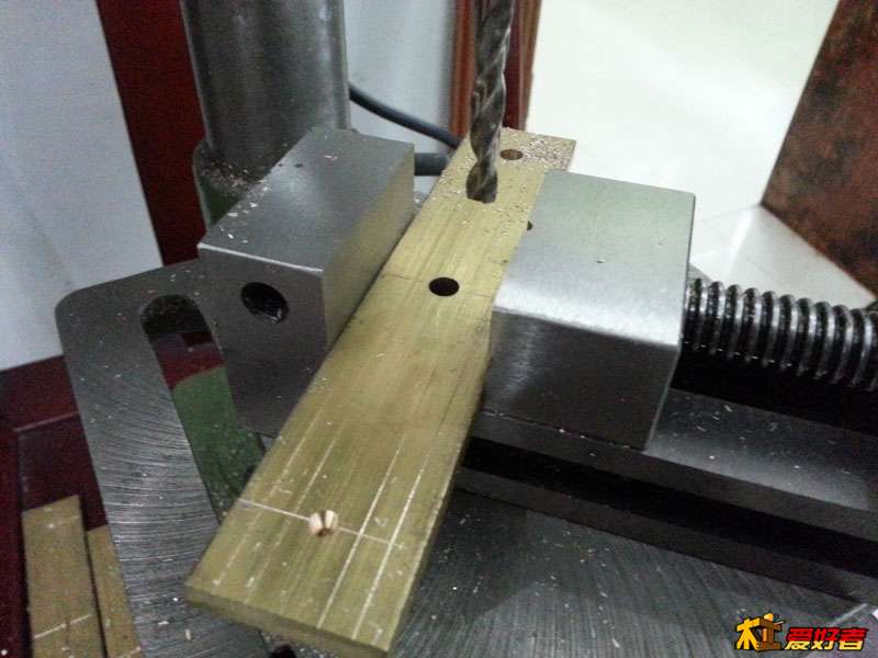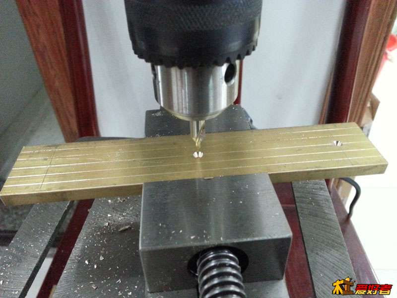 用5.1MM的鉆頭打孔,這個(gè)孔不要打穿,我用的銅條是6MM的厚度,就打5.0-5.5MM的深度